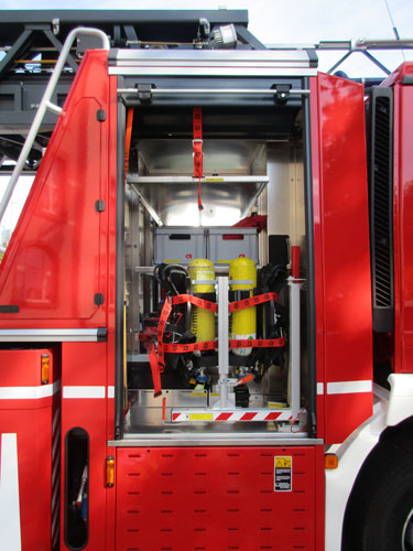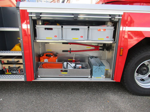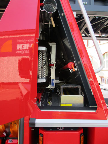 - CAN-Bus-Steuerung der neusten Generation, hochauflösende LCD-Farbdisplays mit selbstleuchtenden Tastern, im Korb und am Hauptbedienstand (Nachtdesign), im Fahrerhaus befindet sich ein weiteres Display zur Steuerung der Warnanlagen und Überwachung des Hubrettungsaufbaues