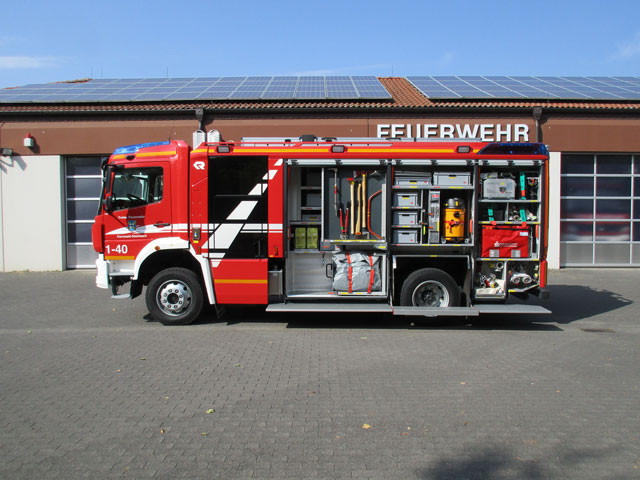 Fahrzeugaufbau für ein Staffellöschfahrzeug StLF 20/25 passend zum Mercedes - Benz 1630 AF 4x4 Atego Fahrgestell mit einem Radstand von 4250 mm