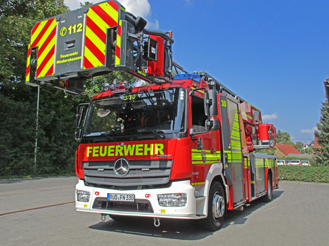 - Vollautomatische, hydraulische Drehleiter, gemäß EN 1846 und EN 14043
