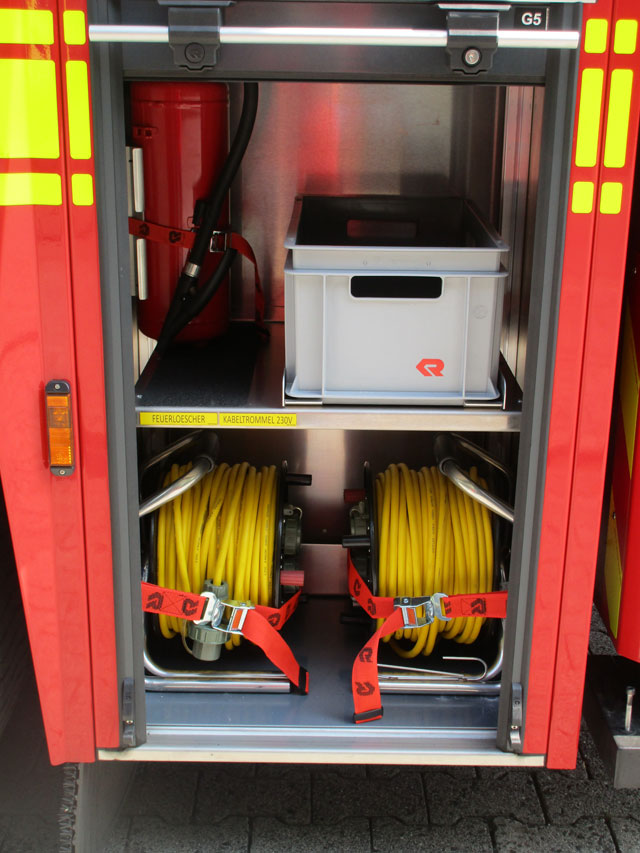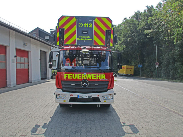 - CAN-Bus-Steuerung der neuesten Generation, hochauflösende LCD-Farbdisplays mit selbstleuchtenden Tastern, im Korb und am Hauptbedienstand (Nachtdesign), im Fahrerhaus befindest sich ein weiteres Display zur Steuerung der Warnanlage und Überwachung des Hubrettungsaufbaues