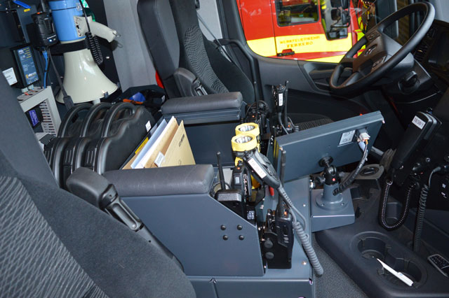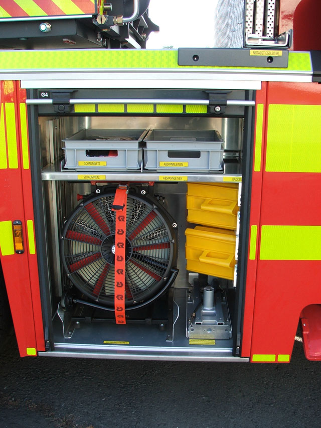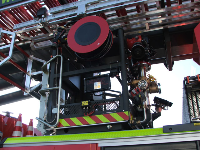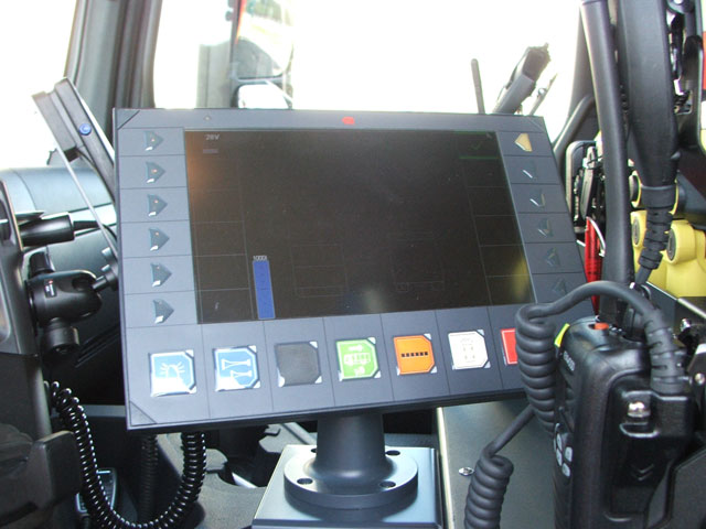- CAN-Bus-Steuerung der neuesten Generation, hochauflösende LCD-Farbdisplays mit selbstleuchtenden Tastern, im Korb und am Hauptbedienstand (Nachtdesign), im Fahrerhaus befindest sich ein weiteres Display zur Steuerung der Warnanlage und Überwachung des Hubrettungsaufbaues