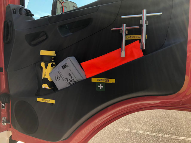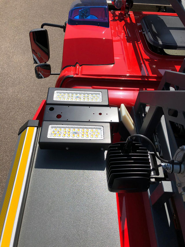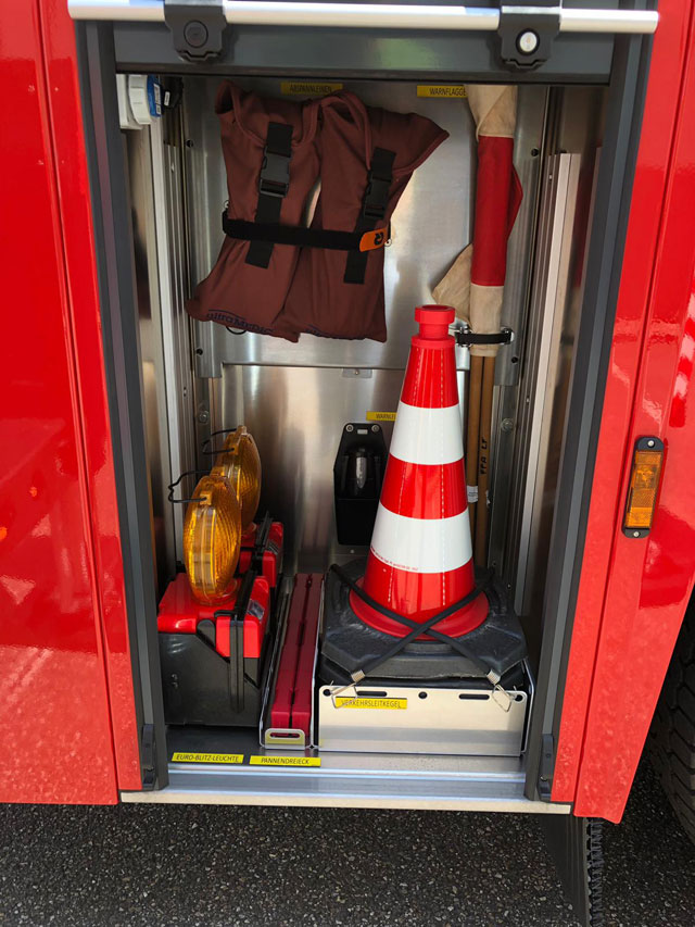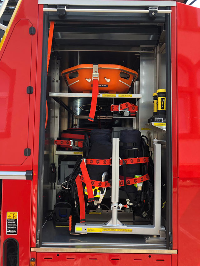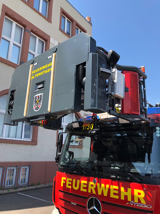 - CAN-Bus-Steuerung der neuesten Generation, hochauflösende LCD-Farbdisplays mit selbstleuchtenden Tastern, im Korb und am Hauptbedienstand (Nachtdesign), im Fahrerhaus befindest sich ein weiteres Display zur Steuerung der Warnanlage und Überwachung des Hubrettungsaufbaues