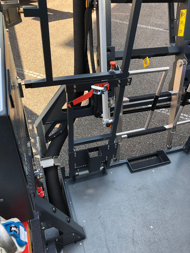 - Ergonomischer Hauptbedienstand mit motorisierter Verstellung der Rückenlehne entsprechend dem Aufrichtewinkel des Leitersatzes