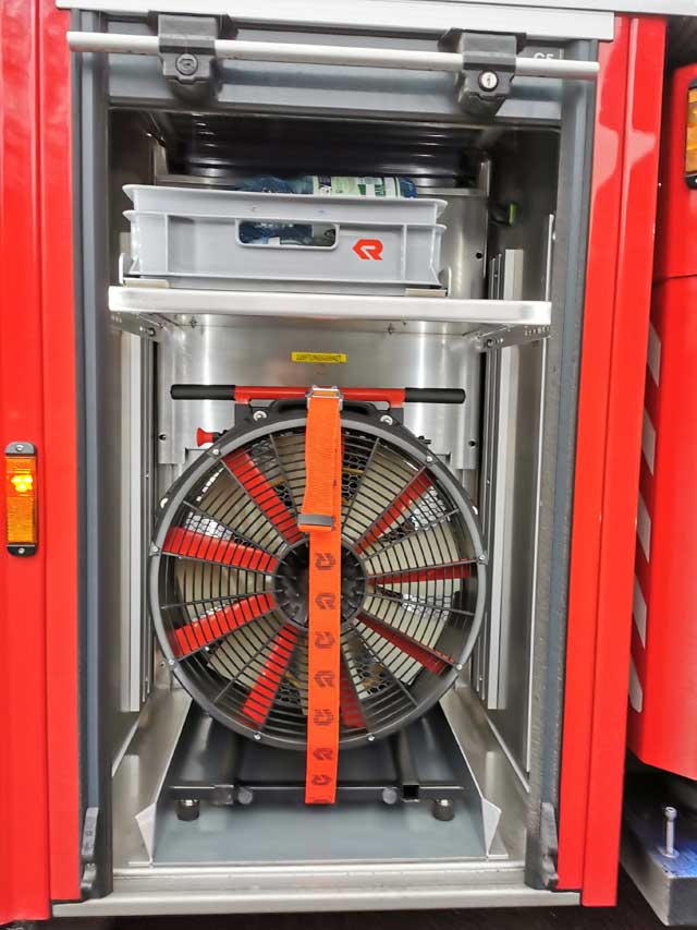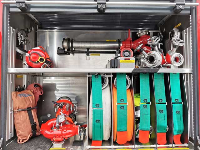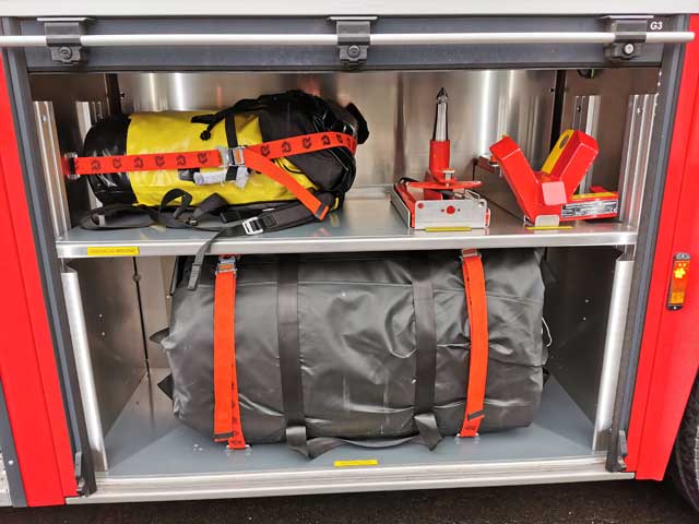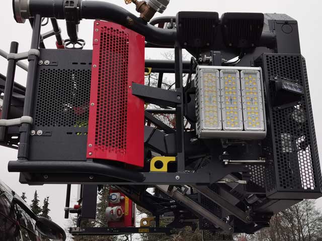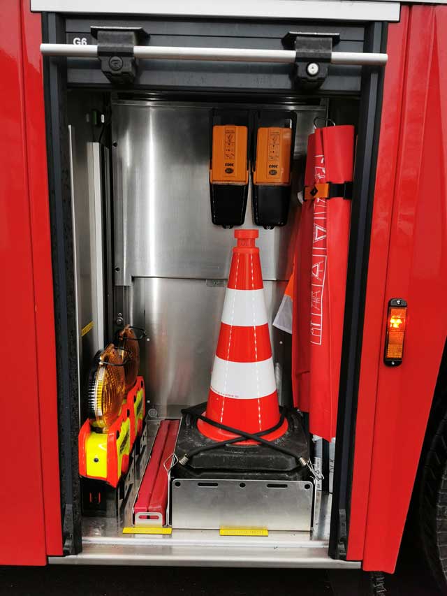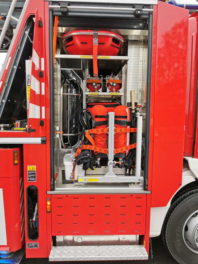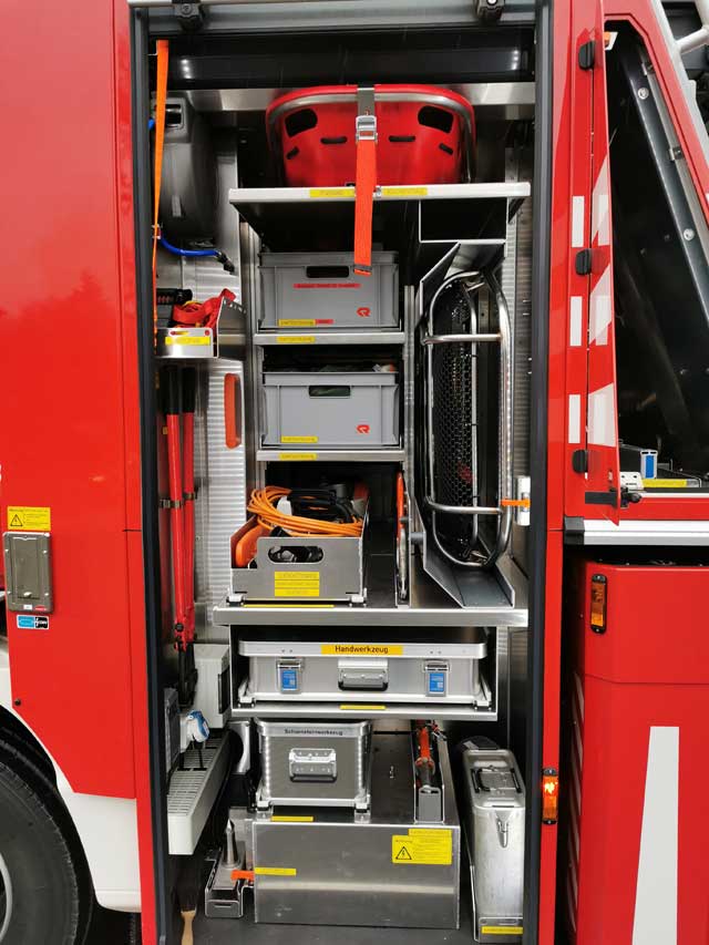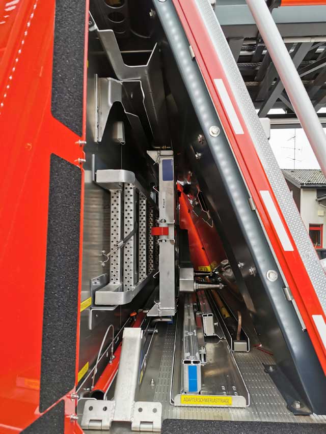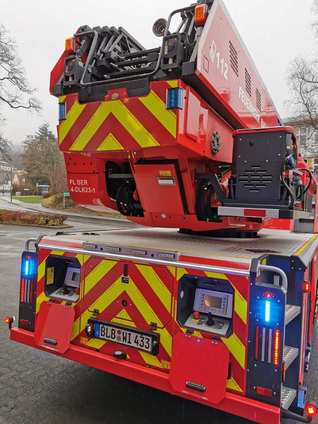 - CAN-Bus-Steuerung der neuesten Generation, hochauflösende LCD-Farbdisplays mit selbstleuchtenden Tastern, im Korb und am Hauptbedienstand (Nachtdesign), im Fahrerhaus befindest sich ein weiteres Display zur Steuerung der Warnanlage und Überwachung des Hubrettungsaufbaues