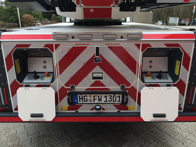 - Blaue Blitzleuchten in LED am Leiterpark hinten