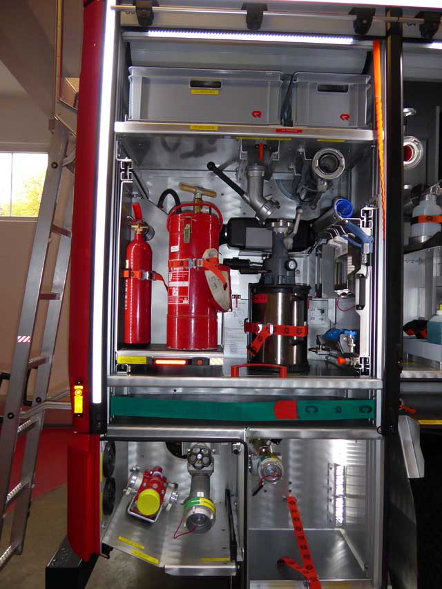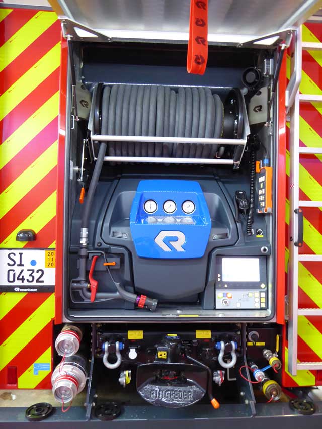 • Rosenbauer Feuerlöschkreiselpumpe N35 mit zentraler Wasserachse, LCS-Steuerung und Hochdruckpumpe mit 50 Meter Haspel