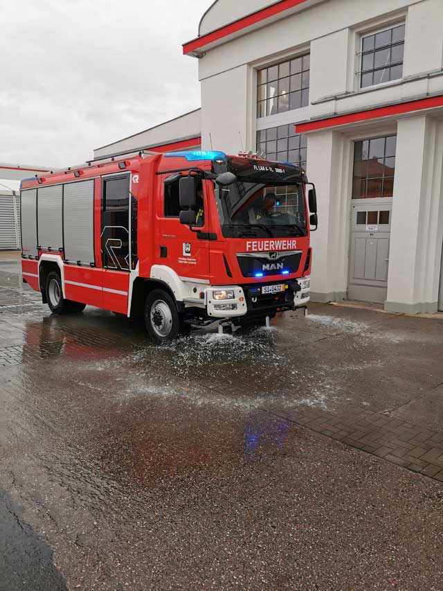 • Löschdüsen unterhalb der Stoßstange und an der Hinterachse