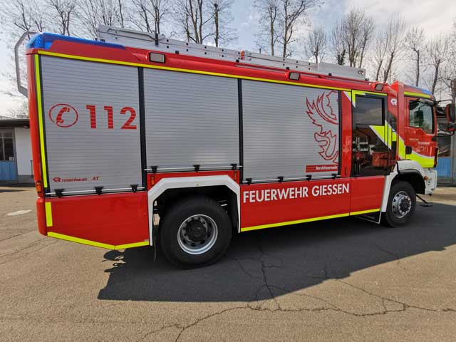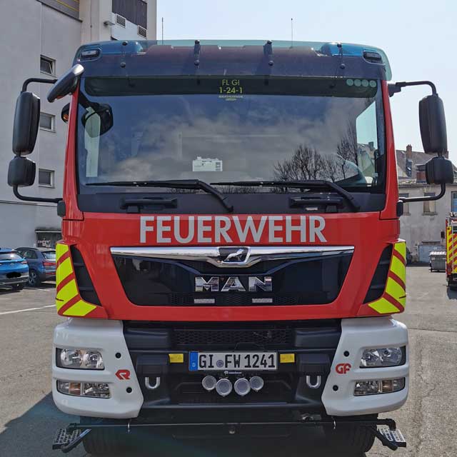 - Löschbalken an der Stoßstange vorn und Löschdüsen an der Hinterachse