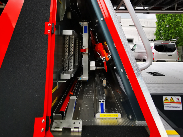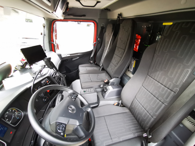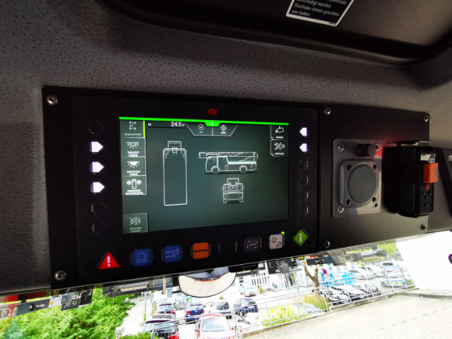 - CAN-Bus-Steuerung der neuesten Generation, hochauflösende LCD-Farbdisplays mit selbstleuchtenden Tastern, im Korb und am Hauptbedienstand (Nachtdesign), im Fahrerhaus befindest sich ein weiteres Display zur Steuerung der Warnanlage und Überwachung des Hubrettungsaufbaues