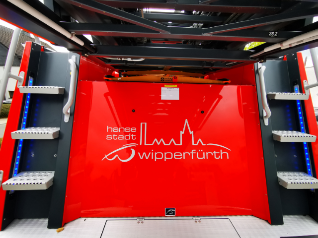 - LED-Sicherheitsstrahler zum Ausleuchten oberhalb der Drehleiter