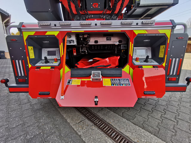- CAN-Bus-Steuerung der neuesten Generation, hochauflösende LCD-Farbdisplays mit selbstleuchtenden Tastern, im Korb und am Hauptbedienstand (Nachtdesign), im Fahrerhaus befindet sich ein weiteres Display zur Steuerung der Warnanlage und Überwachung des Hubrettungsaufbaues