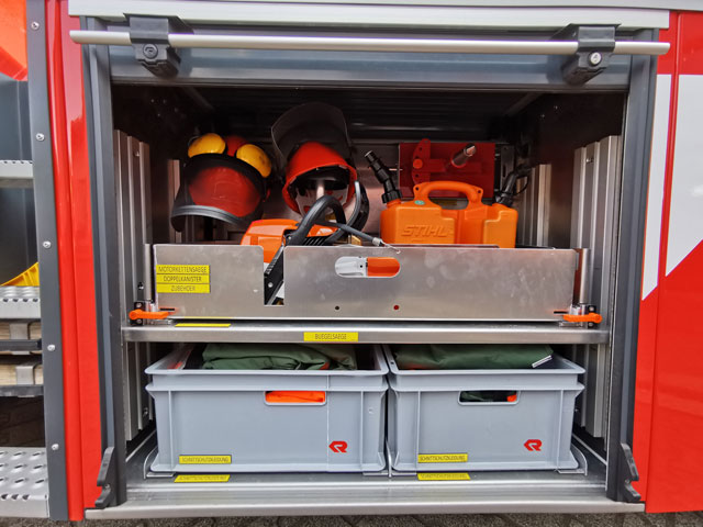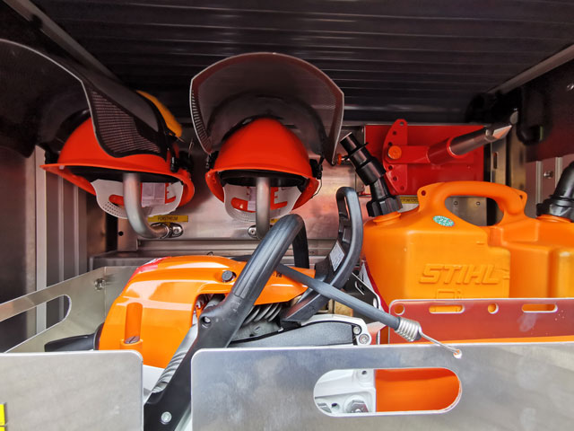 - 2 Helmhalter im Geräteraum für Forsthelme