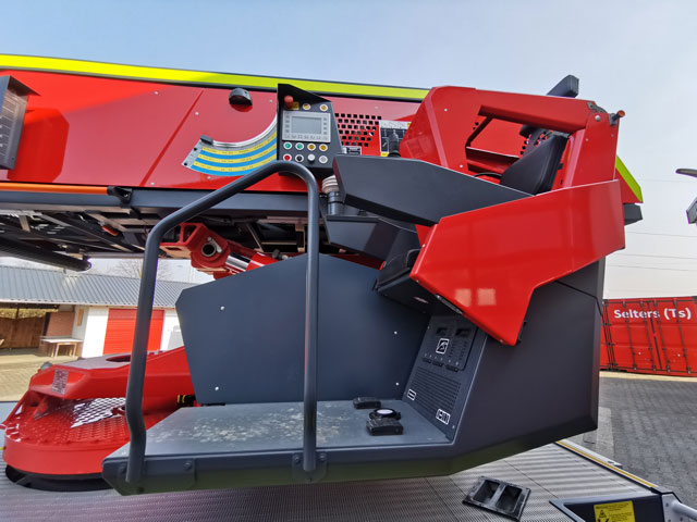 - Ergonomischer Hauptbedienstand mit motorisierter Verstellung der Rückenlehne entsprechend dem Aufrichtwinkel des Leitersatzes