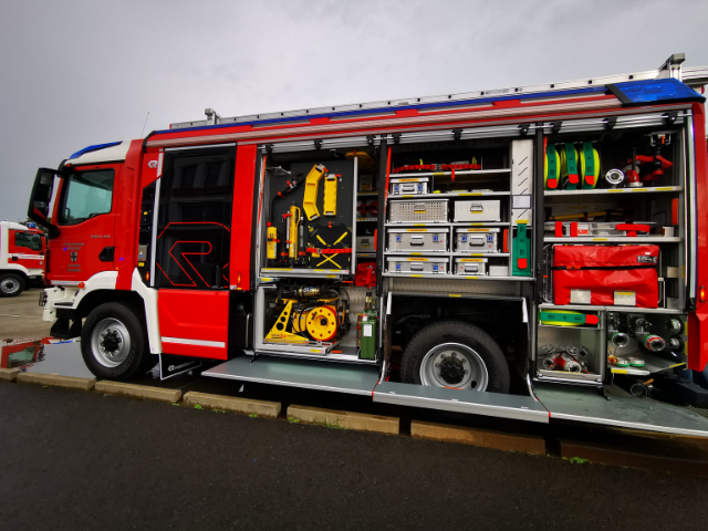 Fahrzeugaufbau im AT Facelift Design für ein Hilfeleistungslöschfahrzeug 10 passend für ein MAN TGM 13.320 TG3 4x4 Euro 6 Fahrgestell mit Radstand 3900 mm.