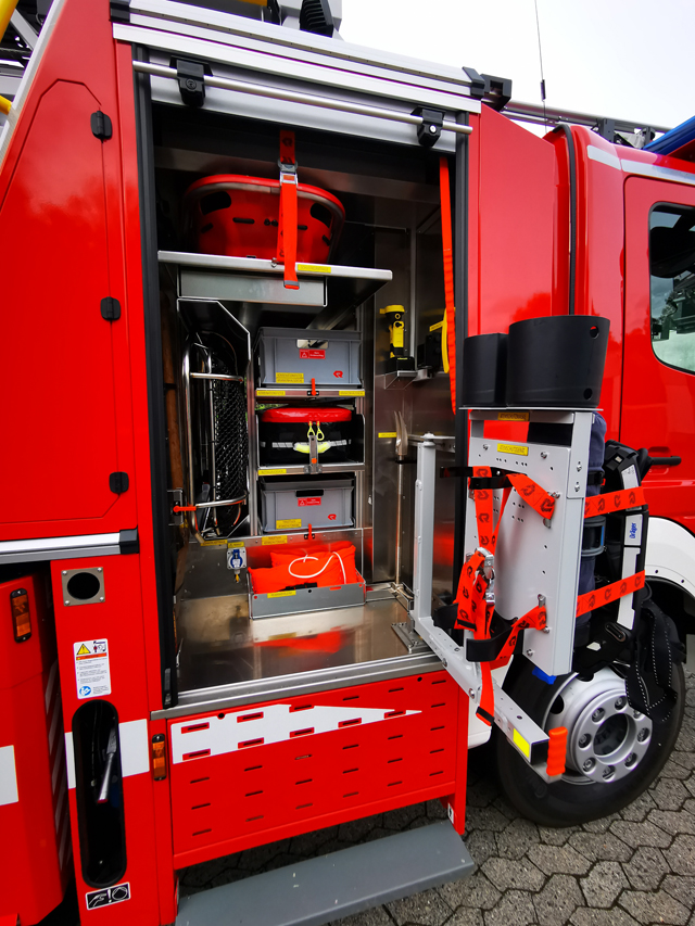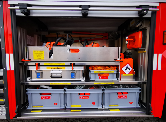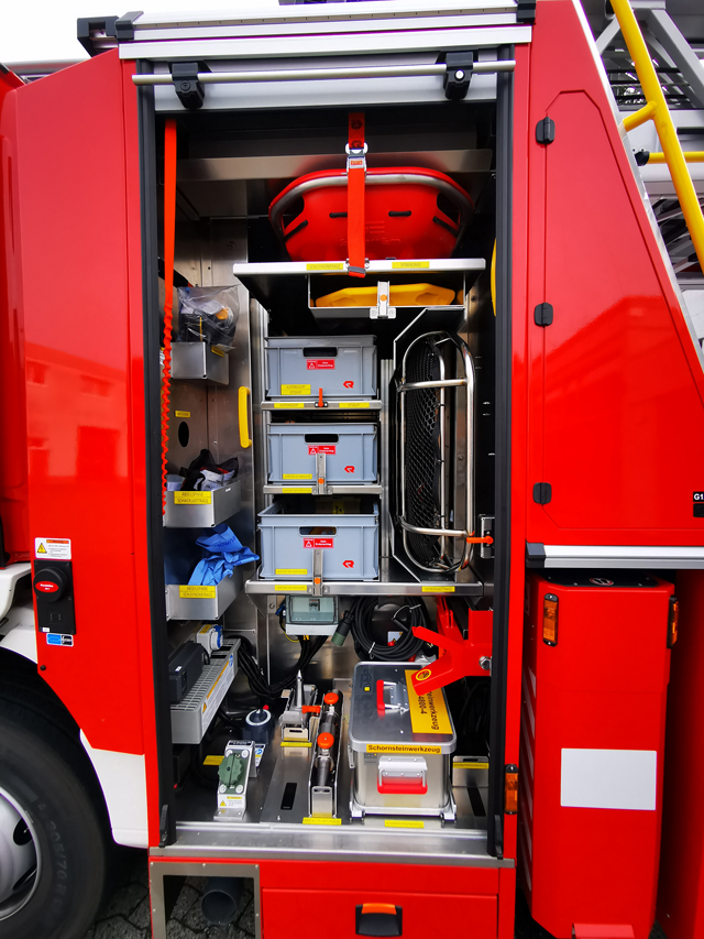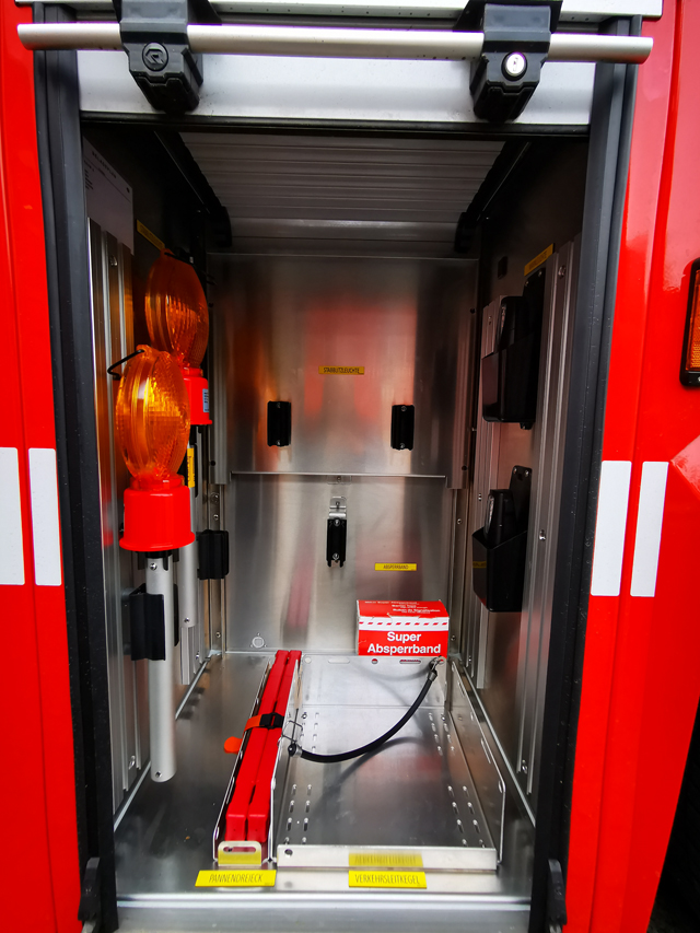 • Staukasten im Korb für Schläuche und Strahlrohr