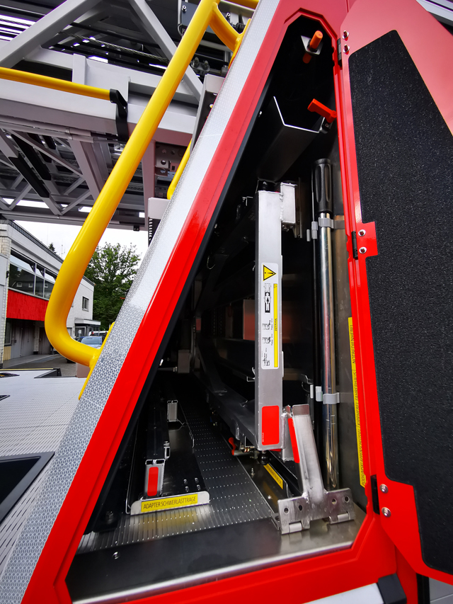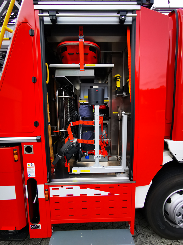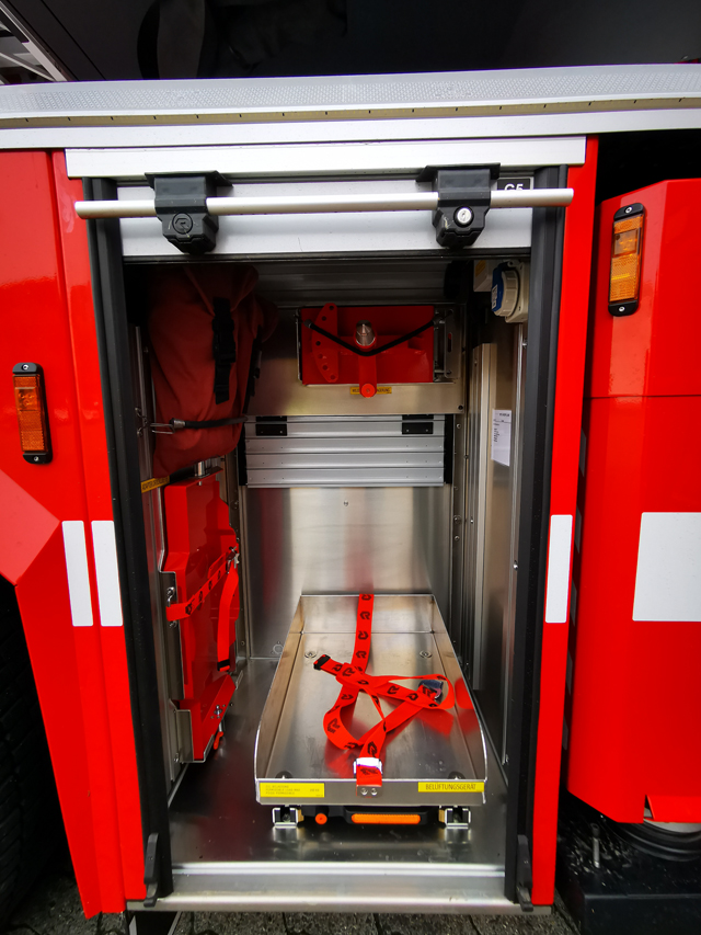 • Aufnahme für Normal- und Schwerlasttrage am Korb