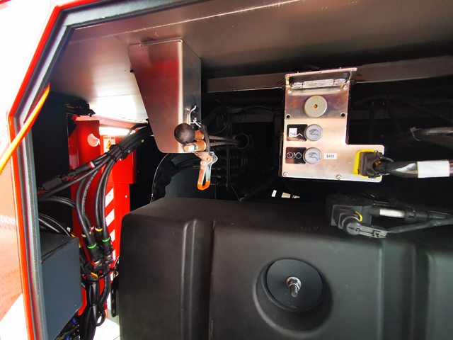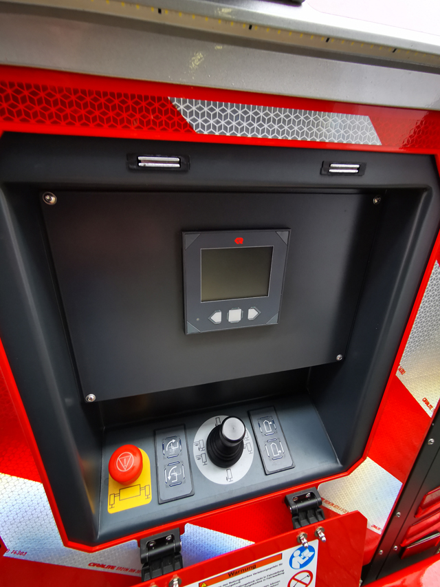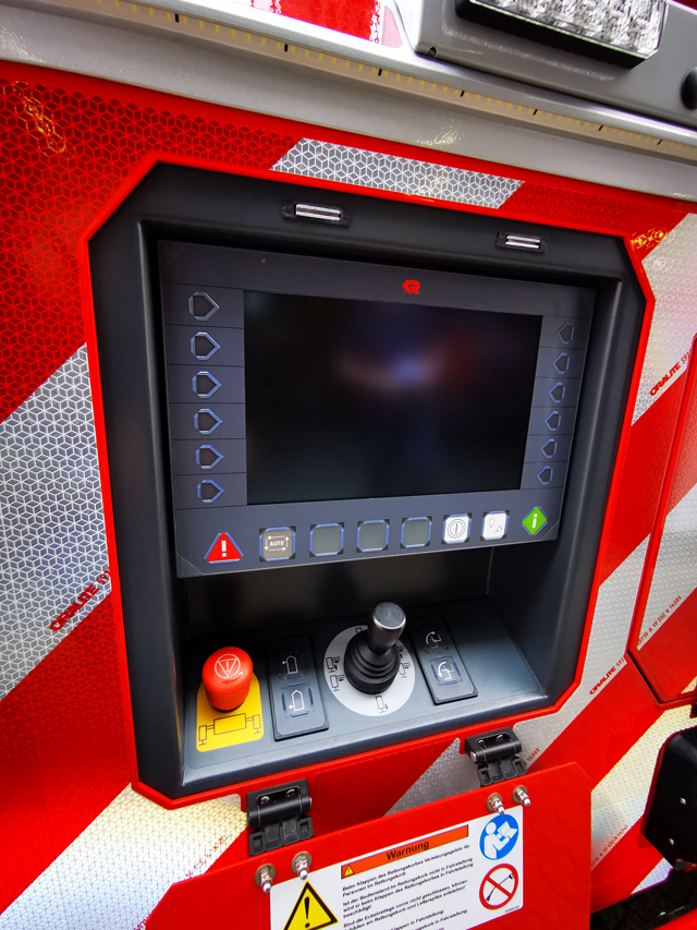 • CAN-Bus-Steuerung der neuesten Generation, hochauflösende LCD-Farbdisplays mit selbstleuchtenden Tastern, im Korb und am Hauptbedienstand (Nachtdesign), im Fahrerhaus befindest sich ein weiteres Display zur Steuerung der Warnanlage und Überwachung des Hubrettungsaufbaues