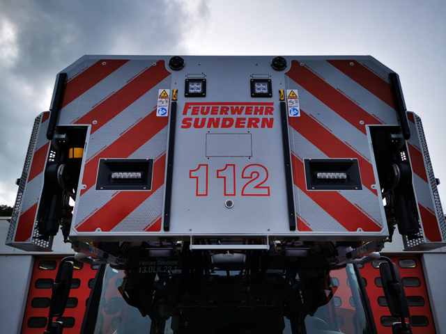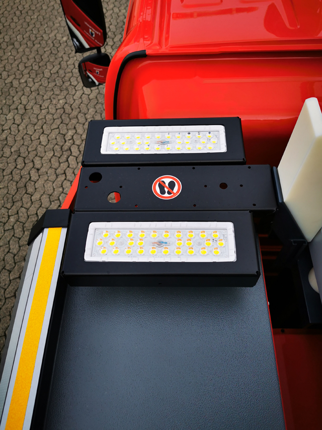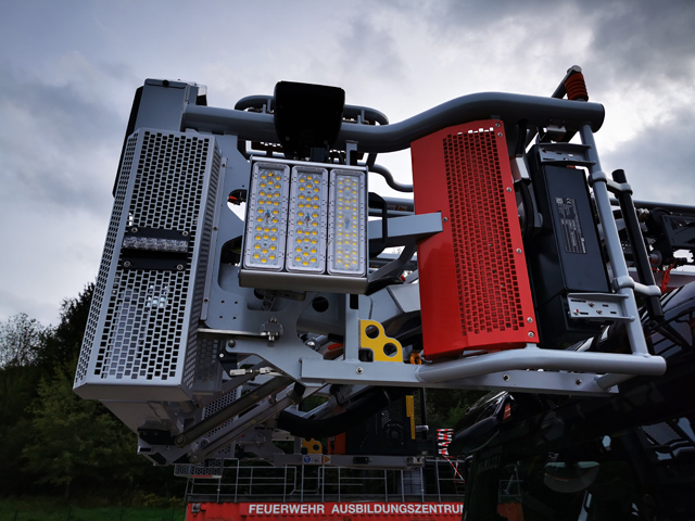 • LED-Sicherheitsstrahler zum Ausleuchten oberhalb der Drehleiter