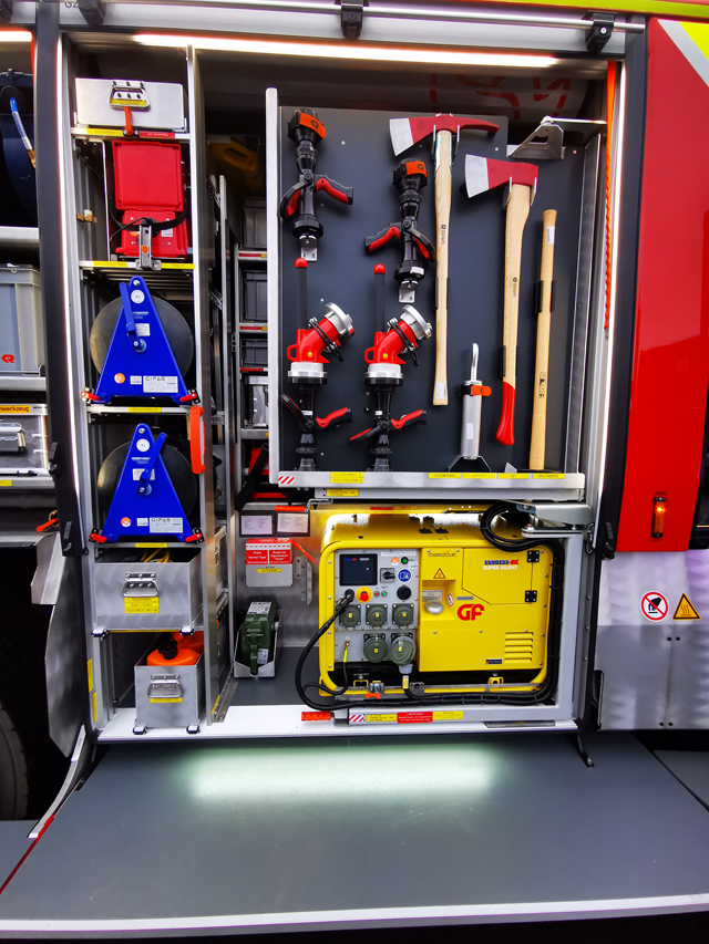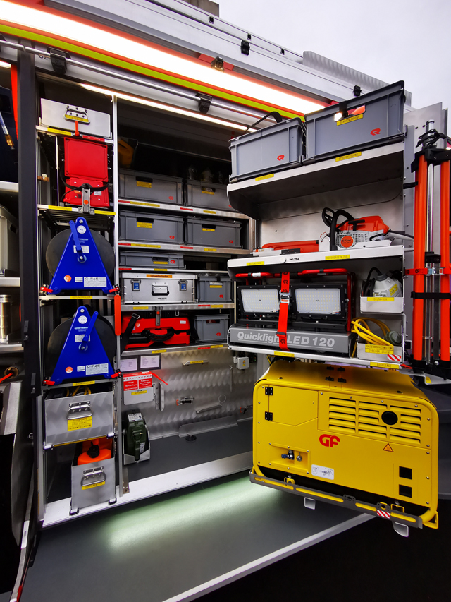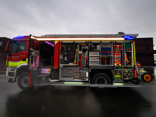 Fahrzeugaufbau im AT Facelift Design für ein Hilfeleistungslöschgruppenfahrzeug HLF 20 passend für ein MAN TGM 18.320 4x4 Euro 6e Radstand mit einem Radstand von 4.200mm.
