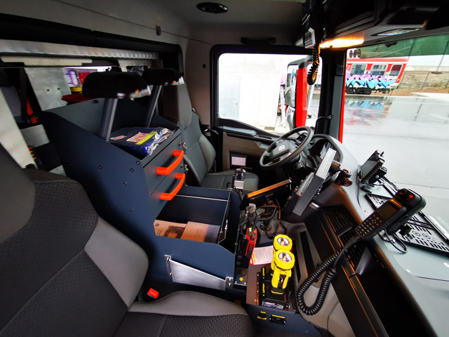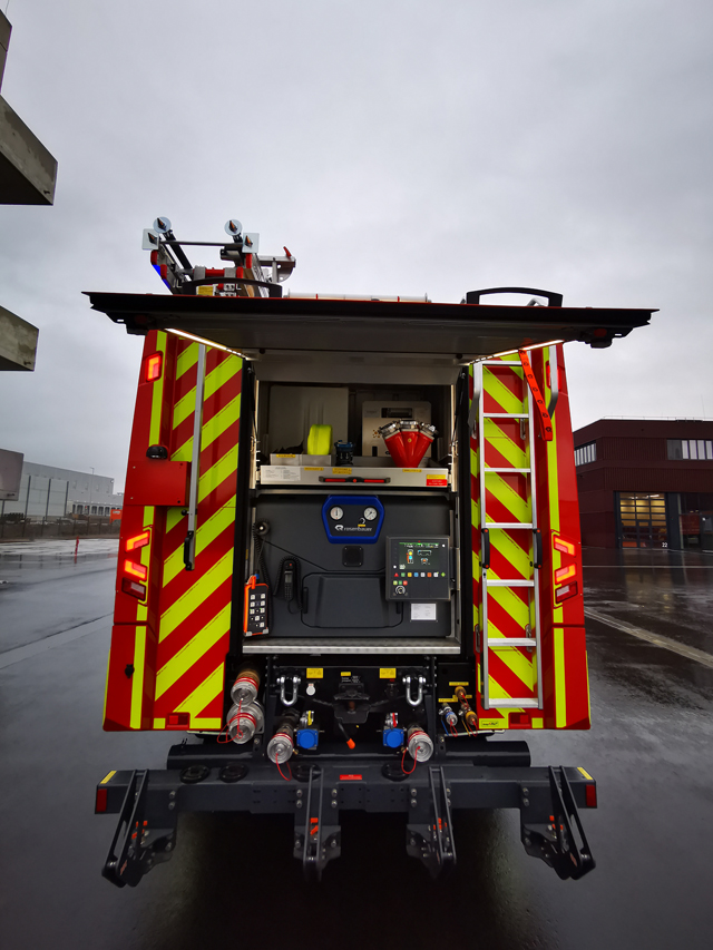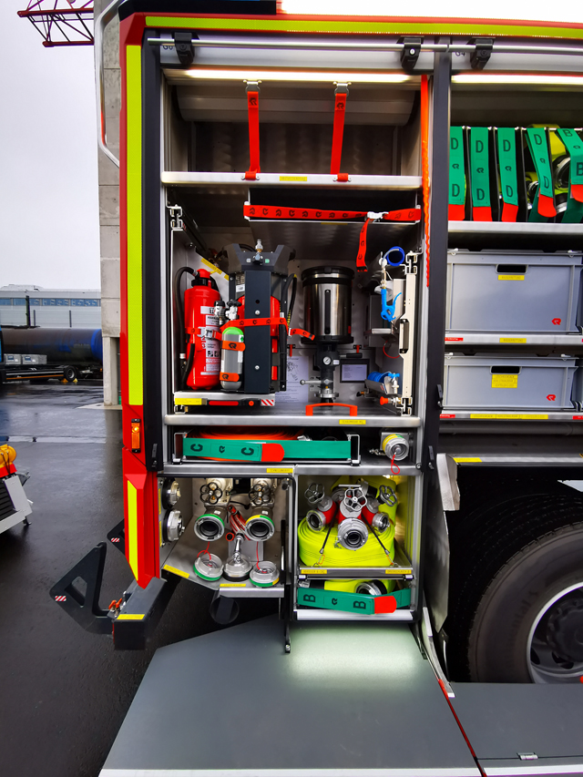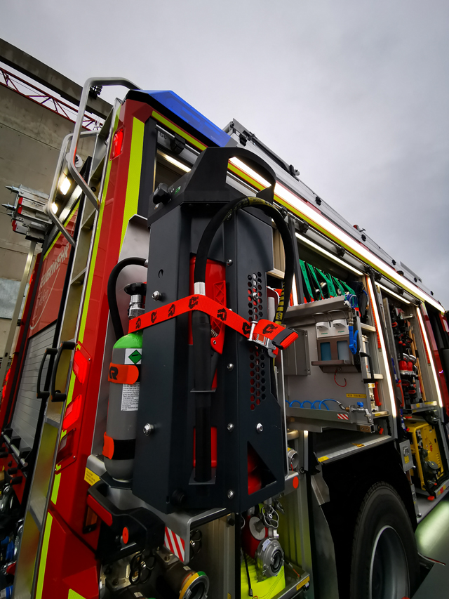 Rosenbauer Poly Portex Löscher auf Drehauszug Comfort gelagert