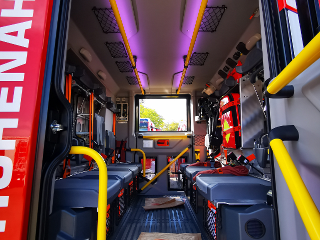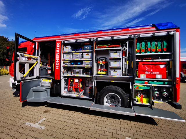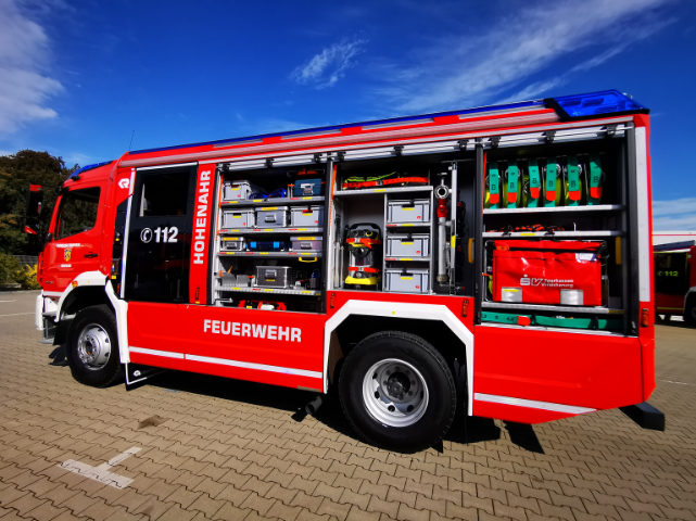 Fahrzeugaufbau im AT Facelift Design für ein Löschgruppenfahrzeug LF 10 passend für einen Mercedes Benz Atego 1530 AF 4x4 Euro 6e mit Radstand 3.860mm.