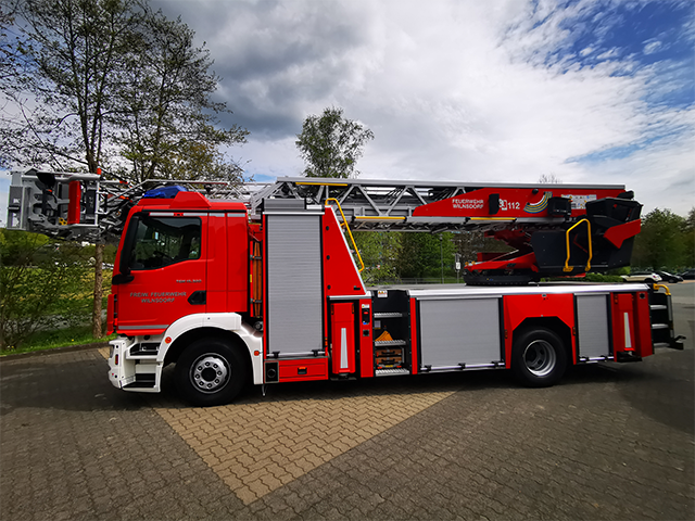 Die Feuerwehr Wilnsdorf freut sich über ihre neue Drehleiter L32 AXS auf einem MAN TGM 15.320 Fahrgestell. Mit einer Rettungshöhe von 30 Metern und modernster LED-Beleuchtung bietet die vollautomatische Drehleiter höchste Effizienz und Sicherheit. Ausgestattet mit Sprungpolster, Schwerlasttrage und Akku-Geräten ist das Fahrzeug perfekt aufgestellt, um in anspruchsvollen Rettungssituationen schnell zu handeln. Wilnsdorf ist damit bestens gerüstet für zukünftige Herausforderungen!