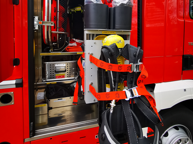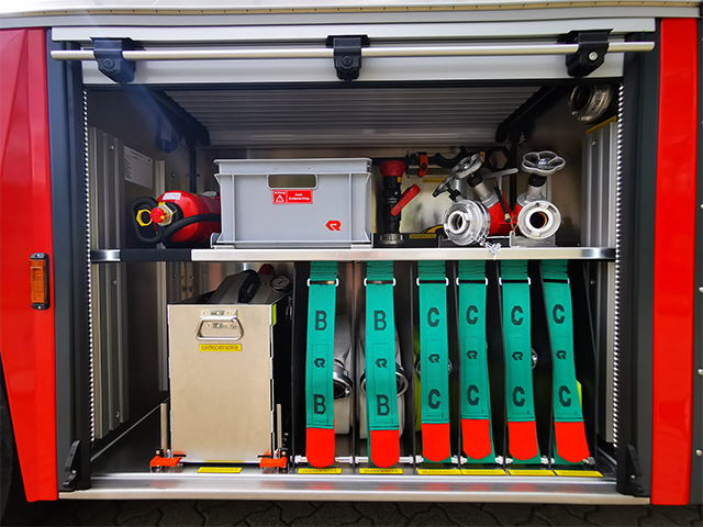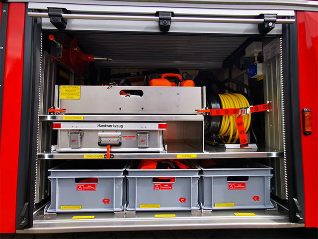 - Staukasten im Korb für Schläuche und Strahlrohr