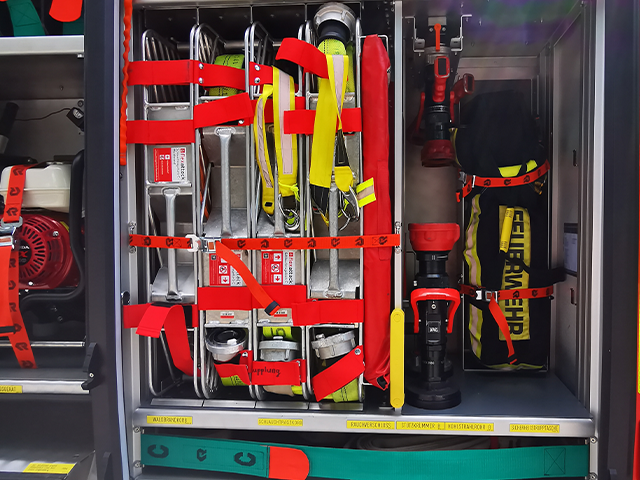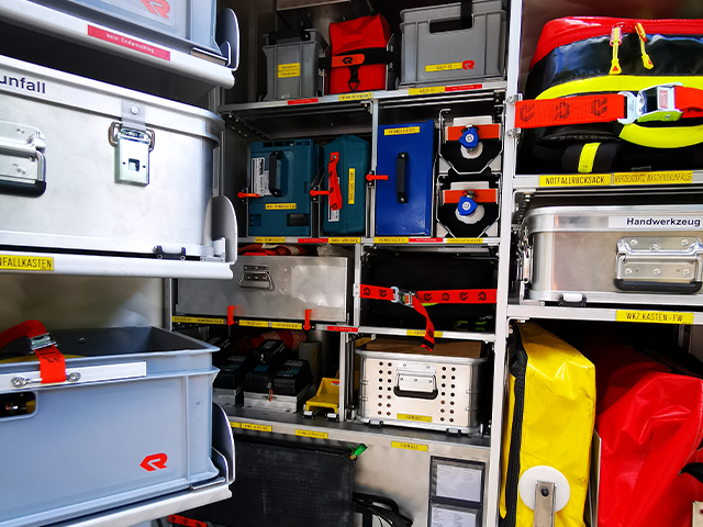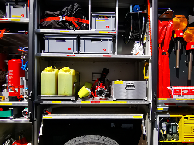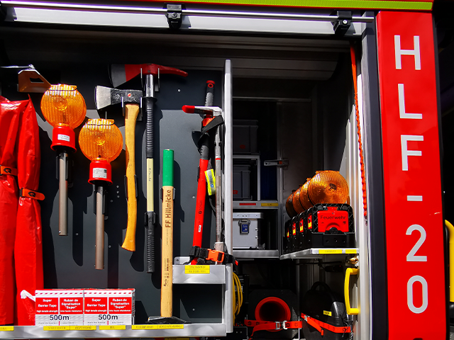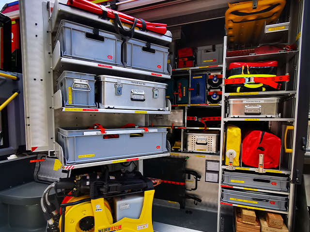 - Rollschläuche B und C in Schlauchfächern gelagert