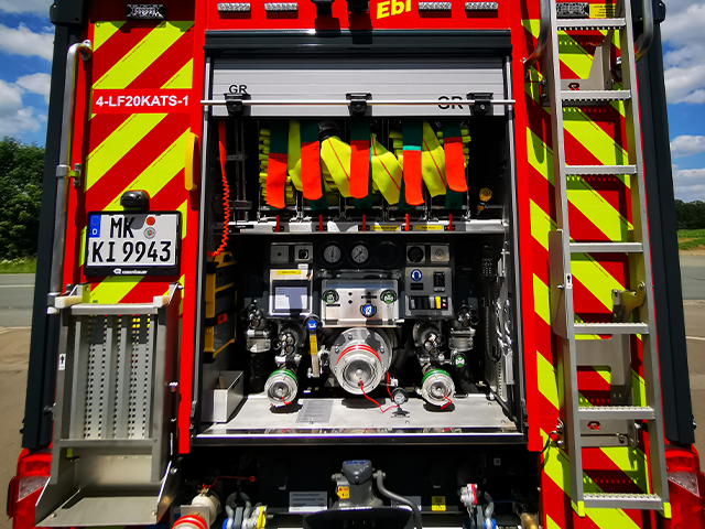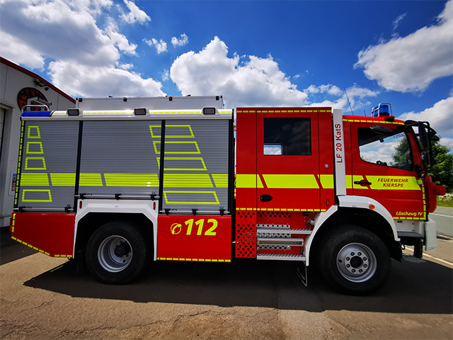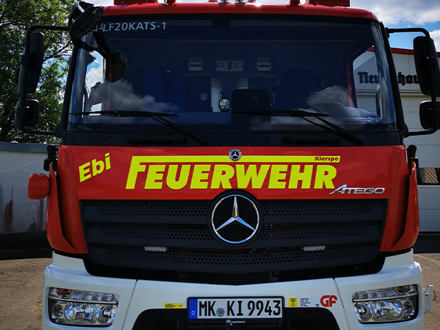 Die Feuerwehr Kierspe hat ein hochmodernes LF 20 KatS auf einem Mercedes-Benz Atego 1327 AF 4x4 Fahrgestell erhalten. Das Fahrzeug punktet mit leistungsstarker LED-Beleuchtung, umfangreicher Rettungstechnik und einem 1.200-Liter-Wassertank. Auch im Innenraum bietet es höchsten Komfort und Sicherheit für die Mannschaft. Das Fahrzeug ist ein weiterer Meilenstein für die Feuerwehr Kierspe!
