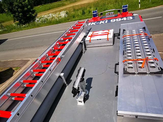 - Abklappbare Standfläche zur Entnahme der Saugschläuche und Bedienung der Schlauchkassetten bei Wasserförderung lange Wegstrecke</