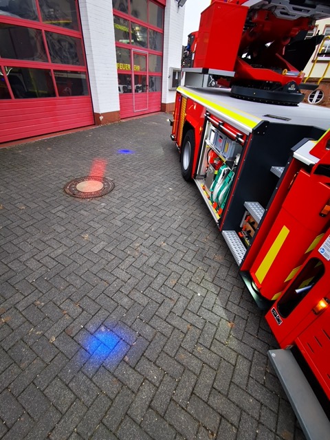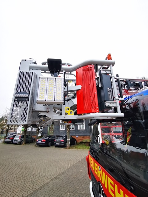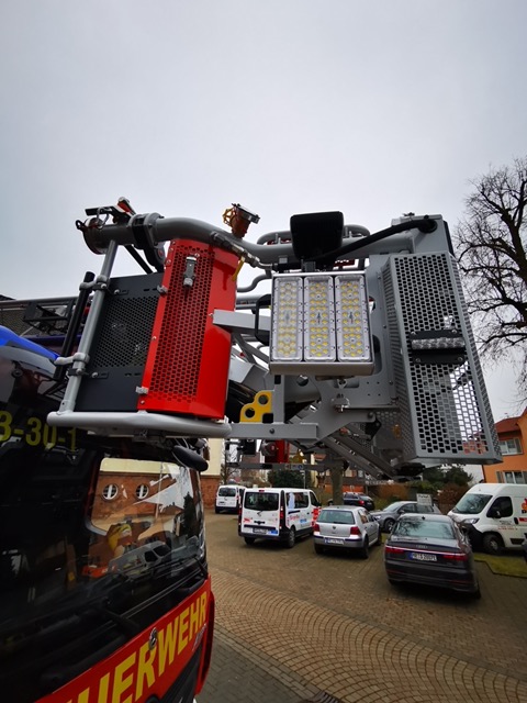 Sky Beams Scheinwerfer links und rechts auf G1 und G2 zum Ausleuchten oberhalb der Drehleiter