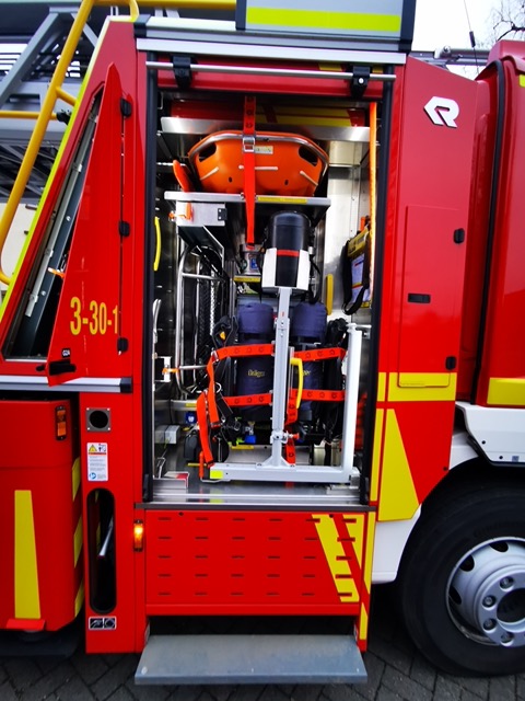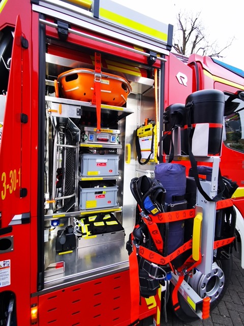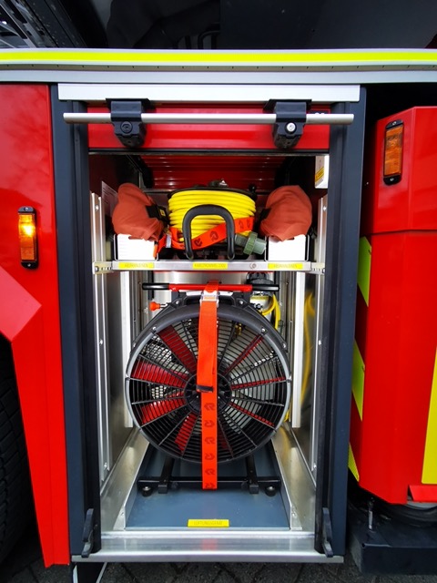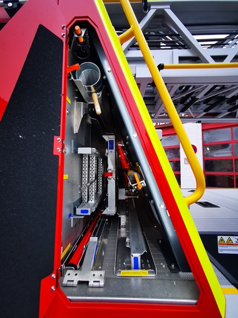 Staufach im Korb für Schlauch, Strahlrohr, Kupplungsschlüssel und Übergangsstück