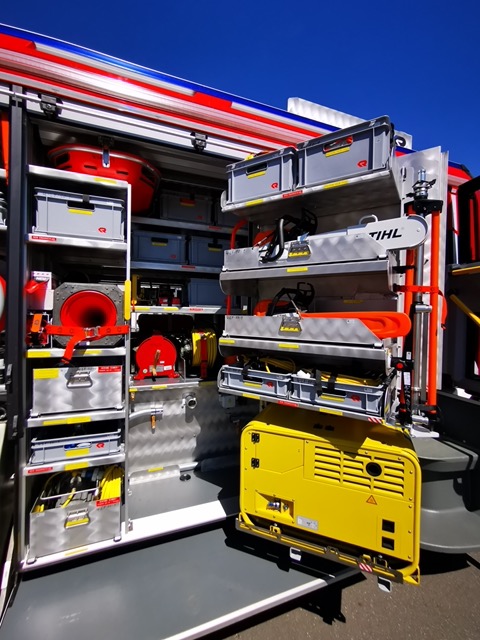 Tragkraftspritzenlagerung als Auszug für eine Rosenbauer Fox 4