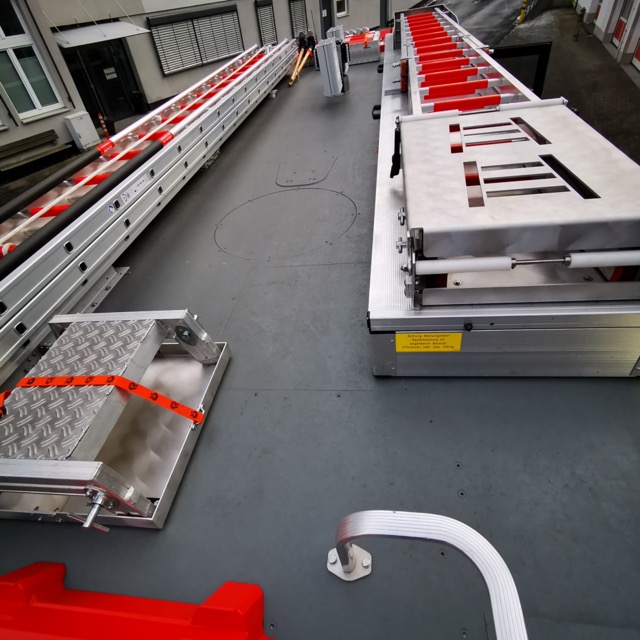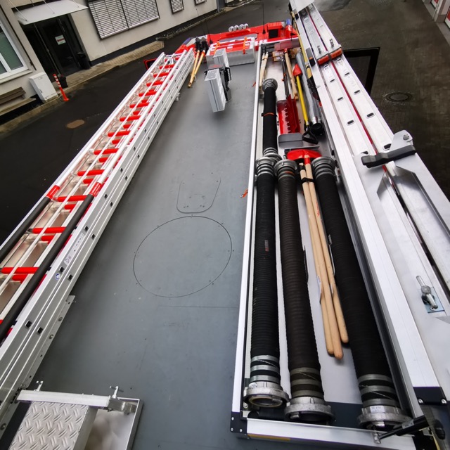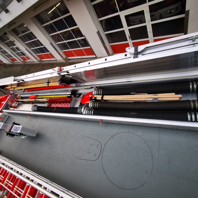 Atemschutzüberwachungstafel im Pumpenraum gelagert unter abkippbarer Lade