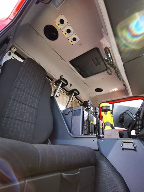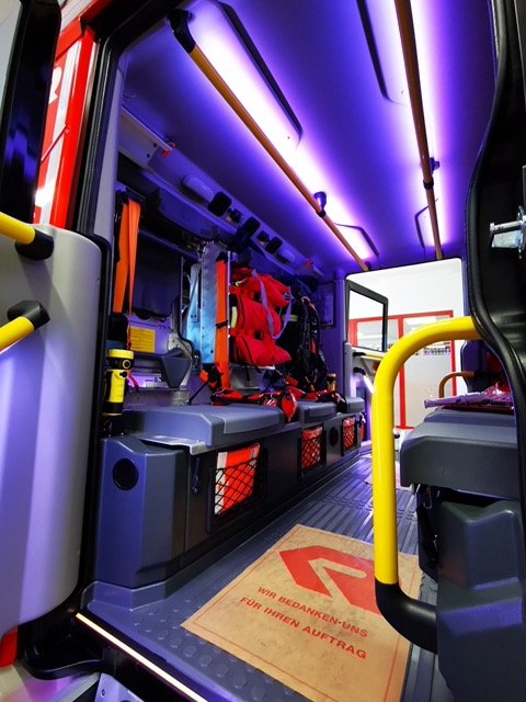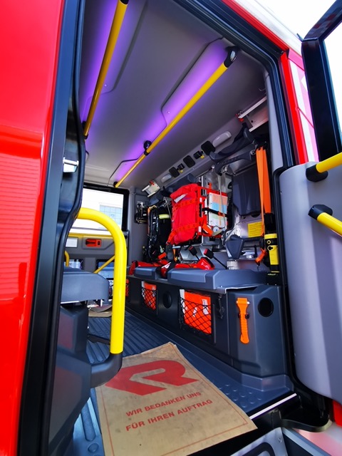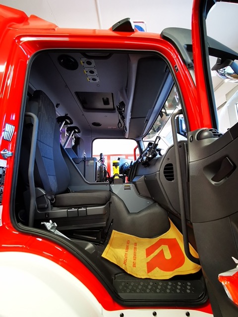 - Lagerungen für Einmalhandschuhe seitlich in der Mannschaftskabine links und rechts