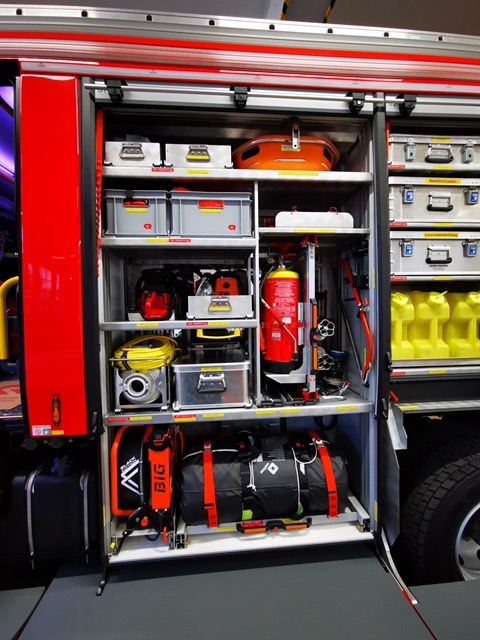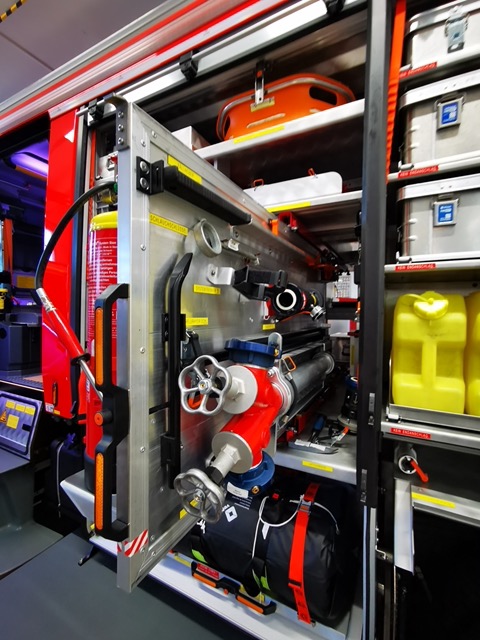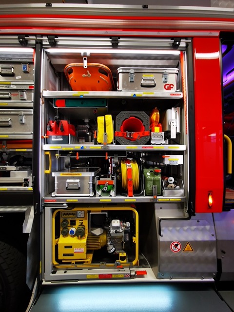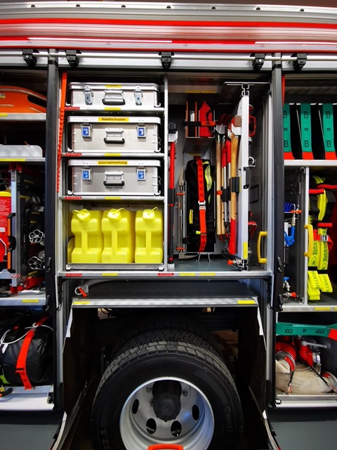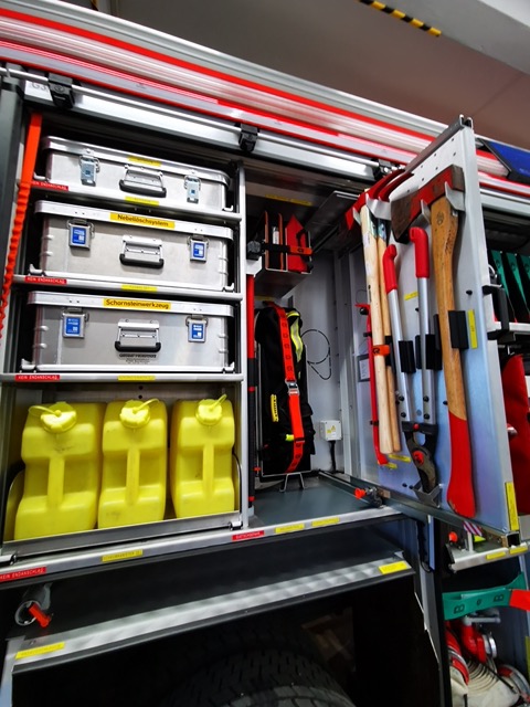 - Auszugswand mit Kleinlöschgeräten und wasserführenden Armaturen