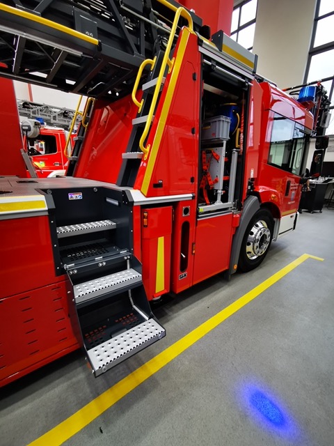 Sky Beams Scheinwerfer links und rechts auf G1 und G2 zum Ausleuchten oberhalb der Drehleiter