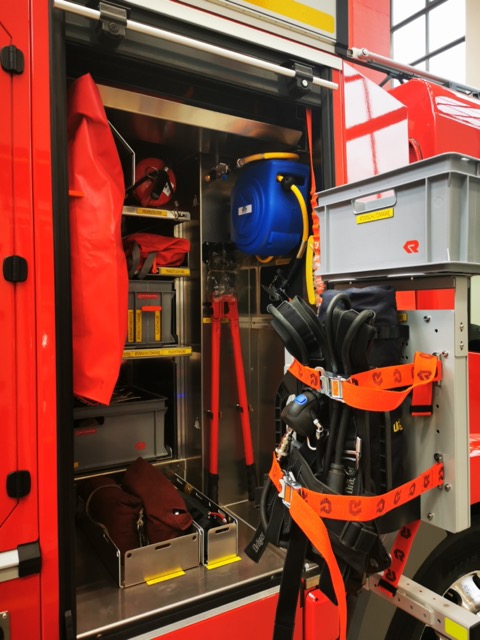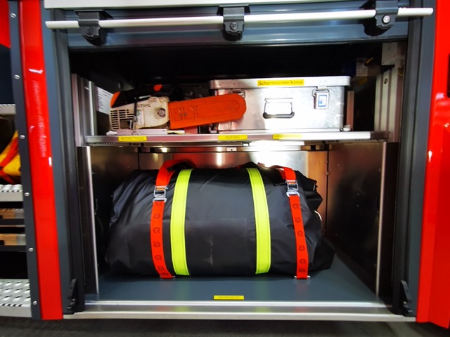 Staufach im Korb für Schlauch, Strahlrohr, Kupplungsschlüssel und Übergangsstück